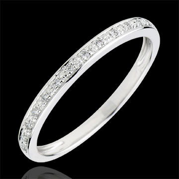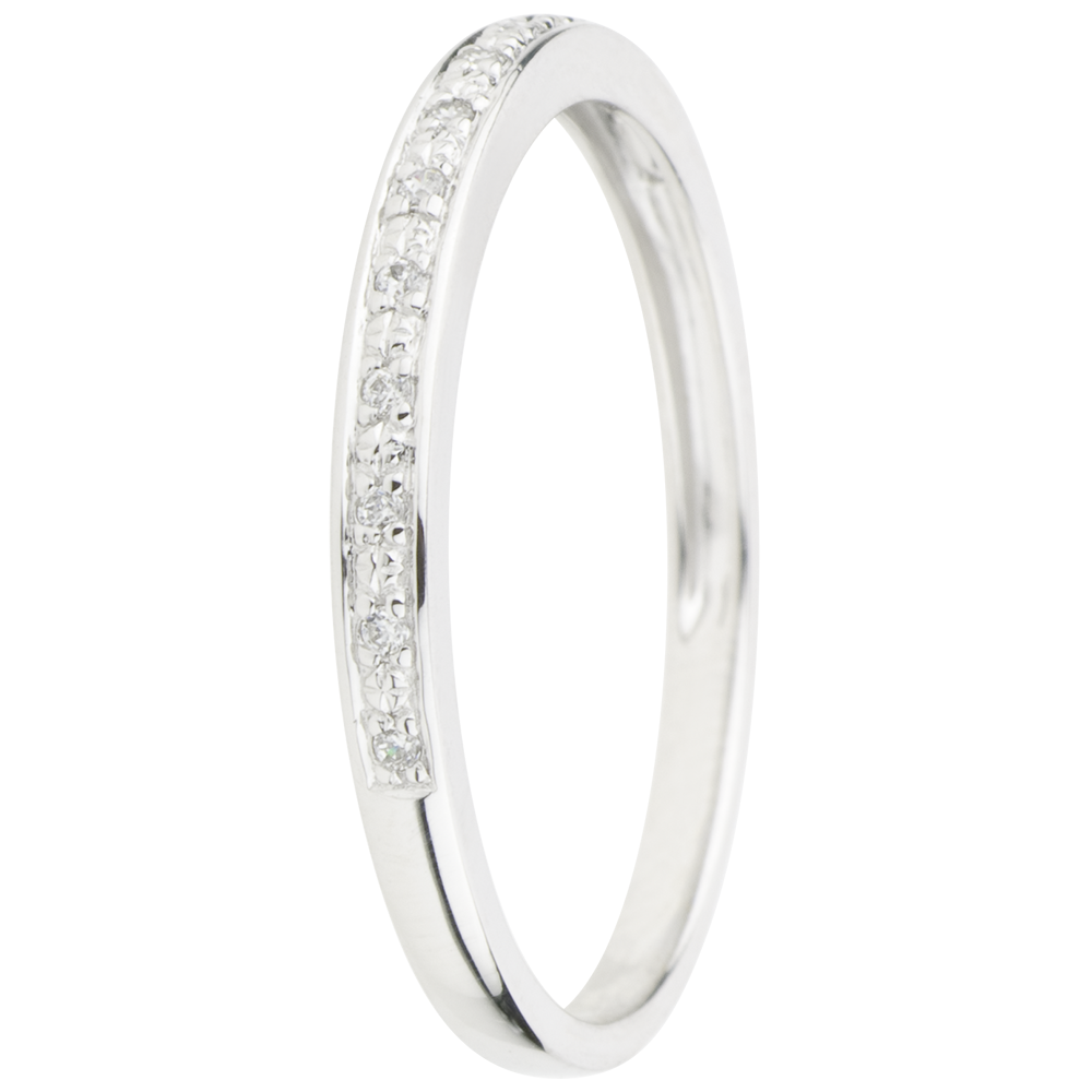 Elegancka i ponadczasowa obrączka z białego złota w oprawie typu grain. Obrączka ślubna stanowiąca idealny komplet z pierścionkiem zaręczynowym lub do noszenia oddzielnie.