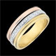 Między siłą a łagodnością obrączka z trzech rodzajów złota i diamentów wyróżnia się nowoczesną estetyką.