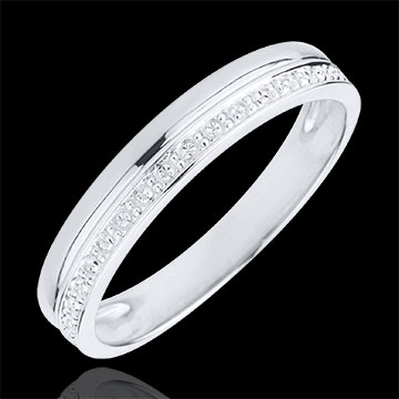 Pasek z białego złota łączy się z paskiem z białego złota poddanym obróbce na wzór diamentu w eleganckiej i ponadczasowej odsłonie.
