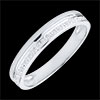 Pasek z białego złota łączy się z paskiem z białego złota poddanym obróbce na wzór diamentu.