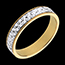 Ta damska obrączka łączy blask ryflowanego białego złota z ciepłem złota żółtego w kreatywnym i eleganckim wzornictwie. Precyzyjnie wykonany wzór w białym złocie odbija światło, przypominając blask diamentów.
