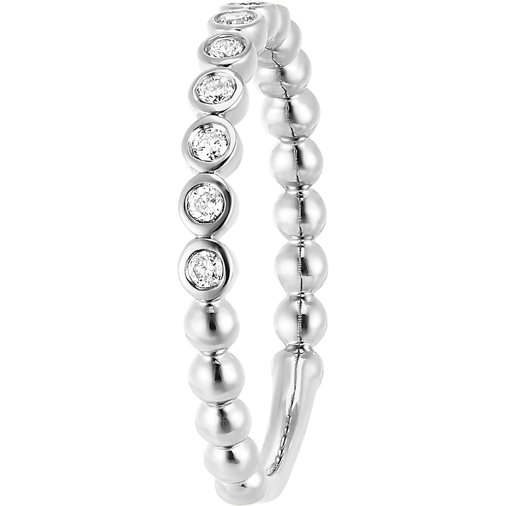 Obrączka z motywem 11 „pereł” wysadzanych diamentami w pełnej oprawie. Wyjątkowy blask powstały z inspiracji delikatnym światłem odbijającym się w kroplach porannej rosy.