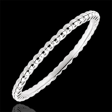 Miriady pereł z białego złota w rzędzie tworzącym obrączkę. Oryginalna i wyrafinowana obrączka ślubna lub obrączka do noszenia oddzielnie, w różnych kolorach złota, lub do łączenia z innymi pierścionkami.