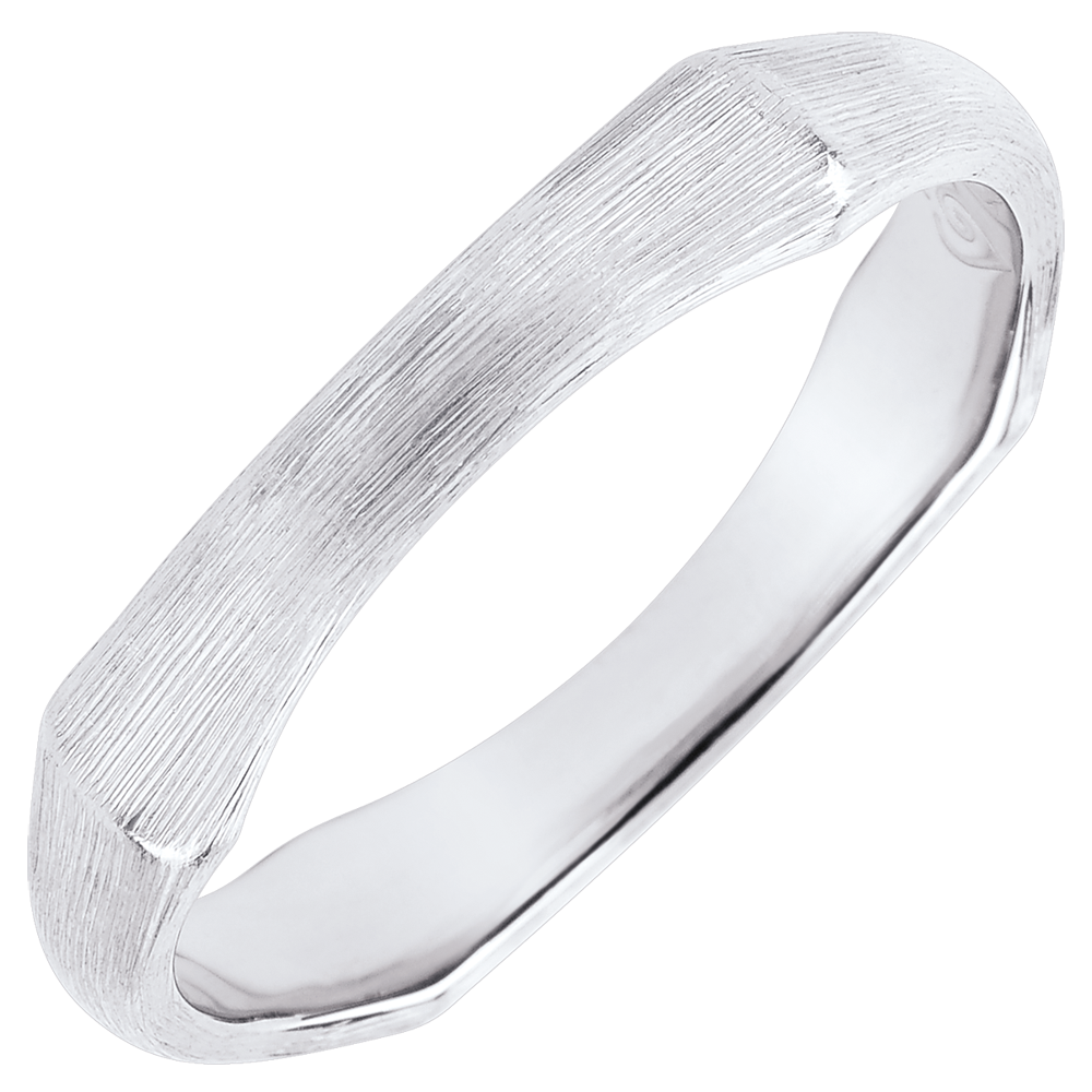 Elastyczna i trwała bambusowa tyczka przeobrażona w wieczną obrączkę ze szczotkowanego białego złota. Wykonane ręcznie wykończenie matowe nadaje obrączce ujmujący naturalny i realistyczny wygląd.