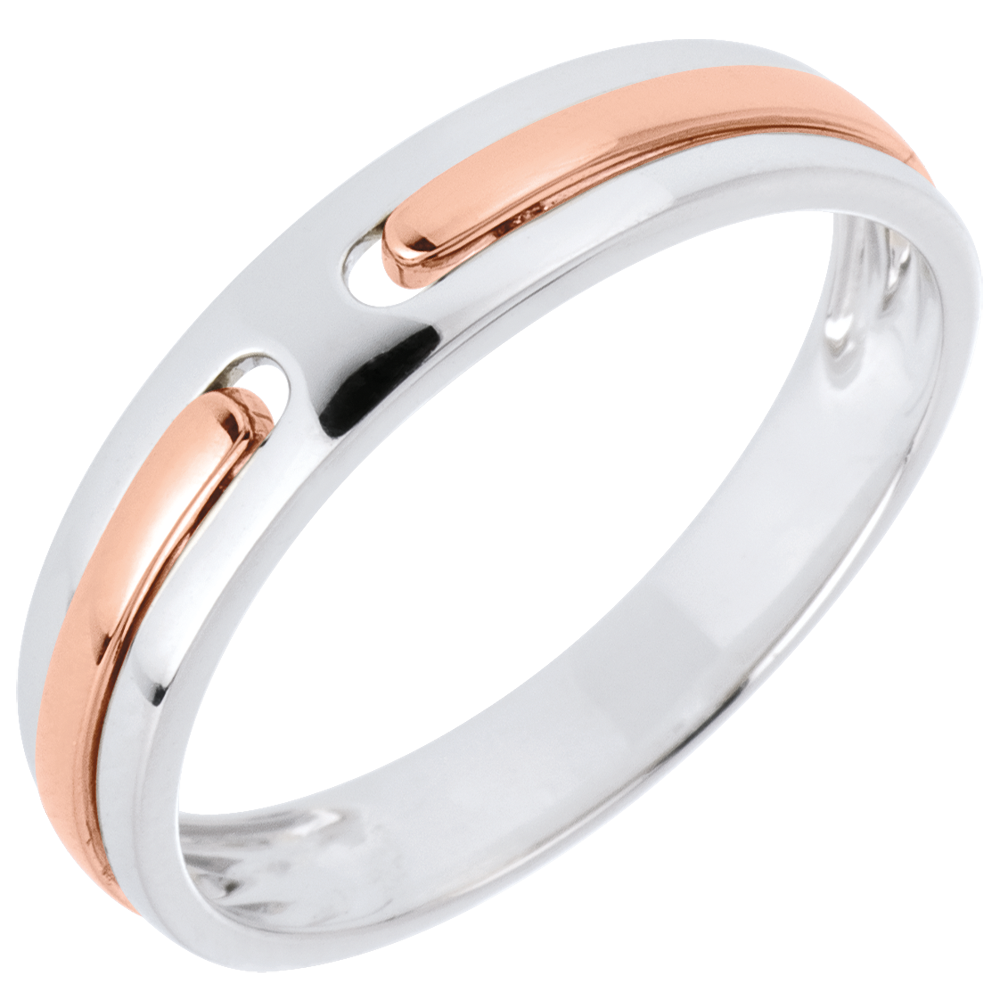 Obrączka z dwóch złączonych linii z różowego złota jako obietnica wieczności. Obrączka ślubna dla kobiet i mężczyzn.