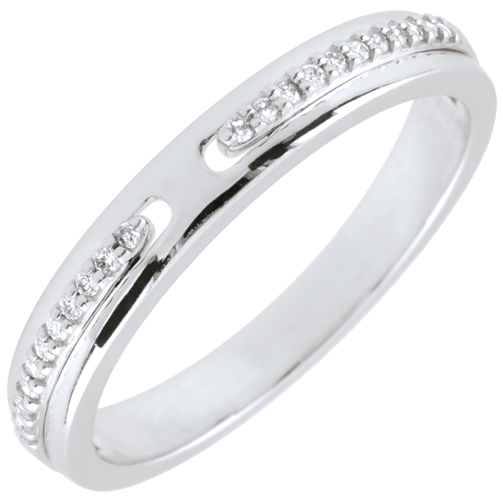 Złota obrączka z dwóch złączonych linii z diamentów jako obietnica wieczności.