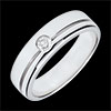 Obrączka o wzornictwie odświeżonym poziomą linią, z diamentem na środku.