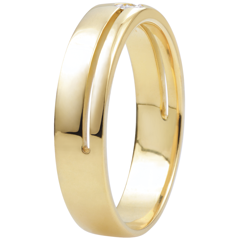 Obrączka o wzornictwie odświeżonym poziomą linią, z diamentem na środku.