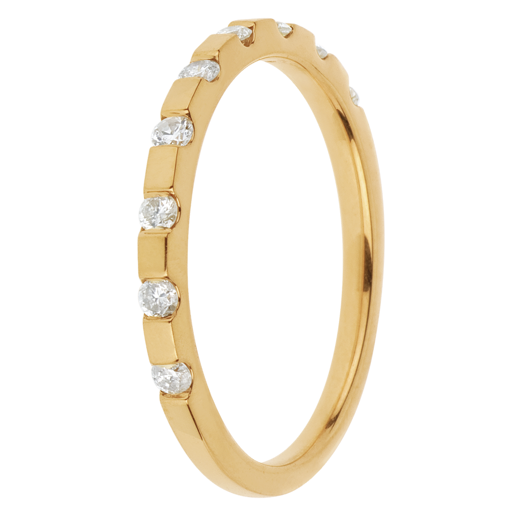 Delikatna równowaga naprzemienności żółtego złota i diamentów o szlifie brylantowym.
