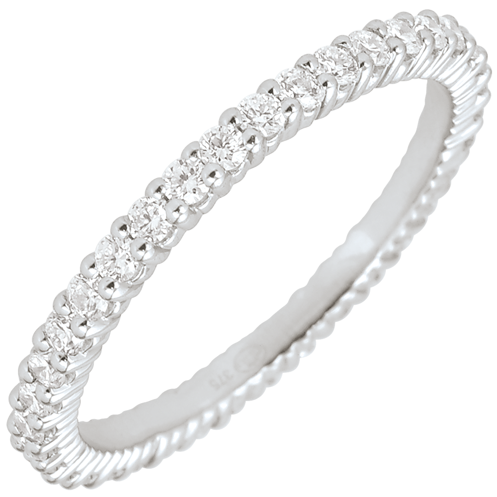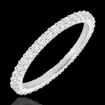 Elegancka obrączka z białego złota wysadzana 38 wyjątkowymi diamentami na całym obwodzie. Ponadczasowa obrączka ślubna stanowiąca idealny komplet z każdym pierścionkiem zaręczynowym lub do noszenia oddzielnie.