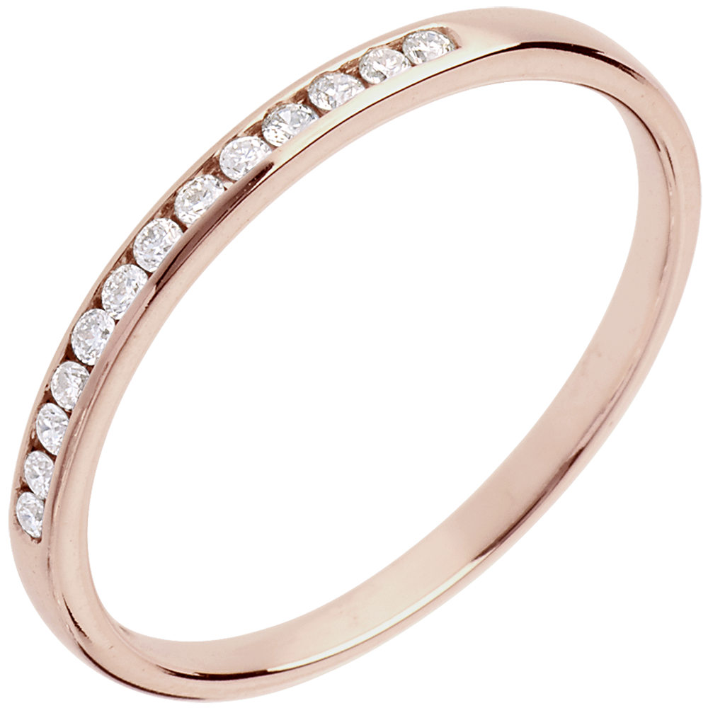 Doskonała równowaga w obrączce o wyrazistej symbolice, wysadzanej okrągłymi diamentami w oprawie kanałowej. Niezastąpiona ozdoba jako wyraz wyjątkowej więzi.