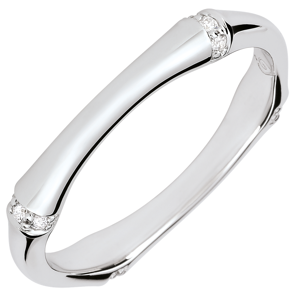 Ten cienki pierścionek inspirowany jest elastyczną siłą bambusa, wykonany z białego złota 9 karatów.