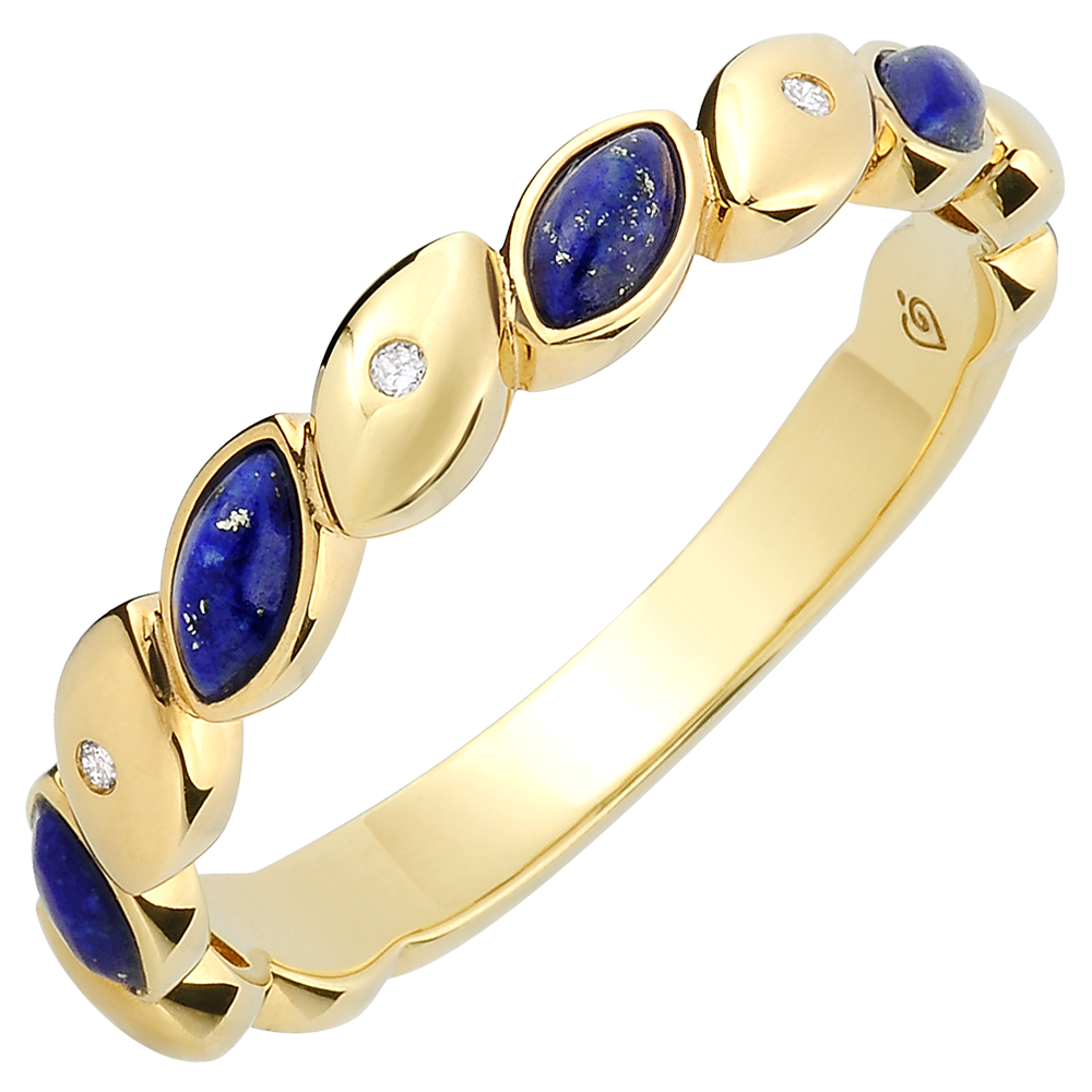 Obrączka Szczęście - Lapis lazuli i diamenty - złoto żółte 9-karatowe