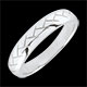 Obrączka o ściętych brzegach utkana z białego złota na środku.