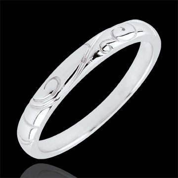 Obrączka podkreślona finezją zwojów i arabesek ze złota.