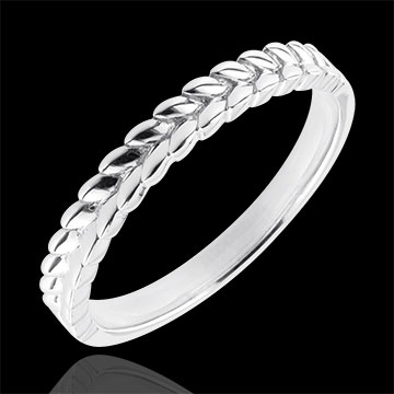 Obrączka z plecionych złotych liści na połowie pierścionka. Oryginalna i wyrafinowana obrączka ślubna lub obrączka do łączenia z innymi pierścionkami.