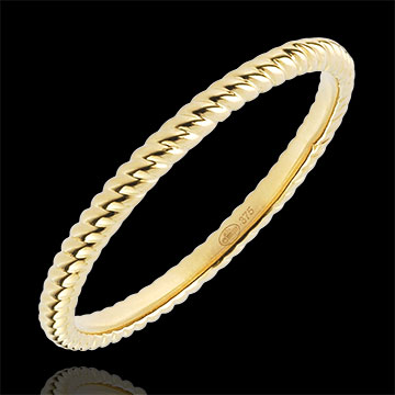 Obrączka w kształcie złotej liny uzupełniająca pierścionek zaręczynowy w tym samym stylu, z liną w innym kolorze złota, lub z innymi obrączkami z motywami.