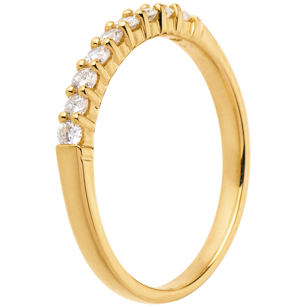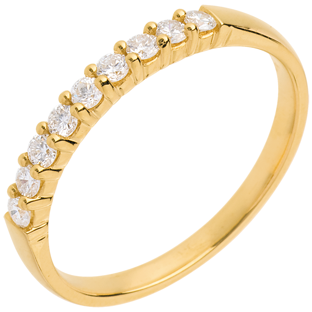 Obrączka z żółtego złota 18-karatowego w połowie wysadzana diamentami - krapy - 0,25 karata - 9 diamentów