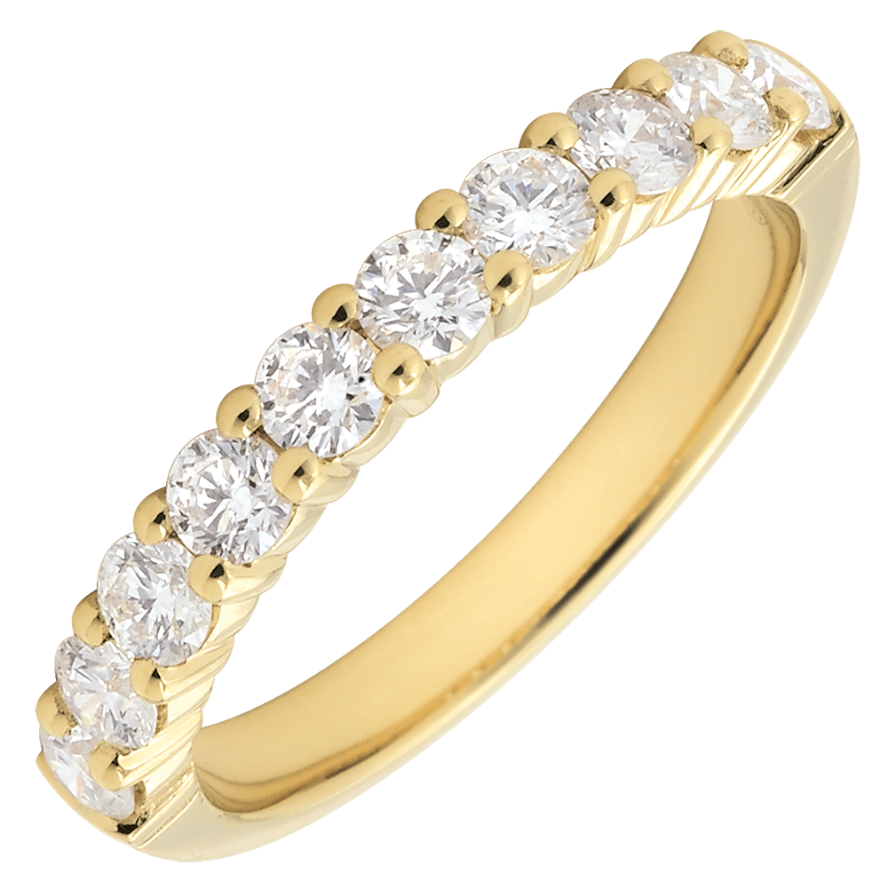 Obrączka z żółtego złota 18-karatowego w połowie wysadzana diamentami - krapy - 0,65 karata - 10 diamentów