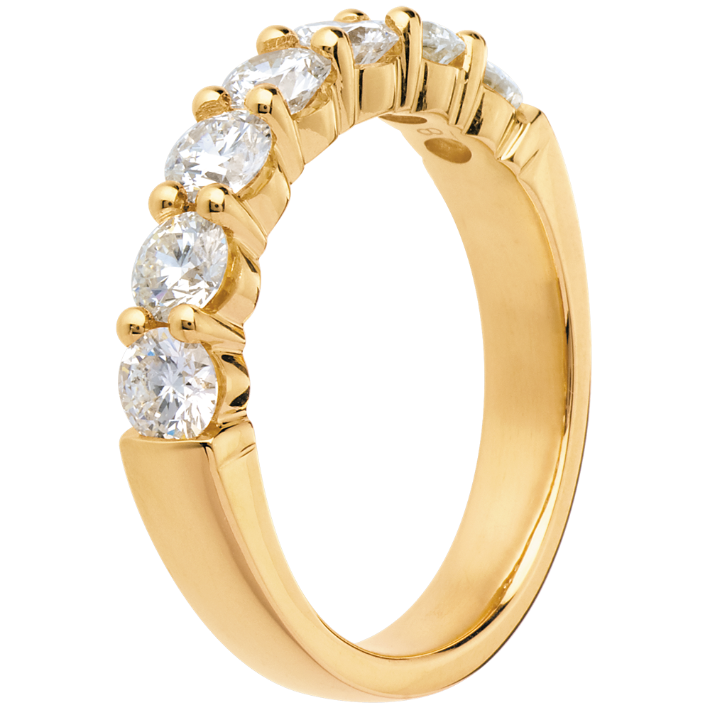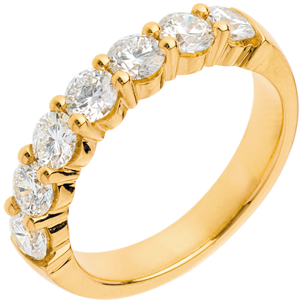Obrączka z żółtego złota 18-karatowego w połowie wysadzana diamentami - krapy - 1,2 karata - 7 diamentów