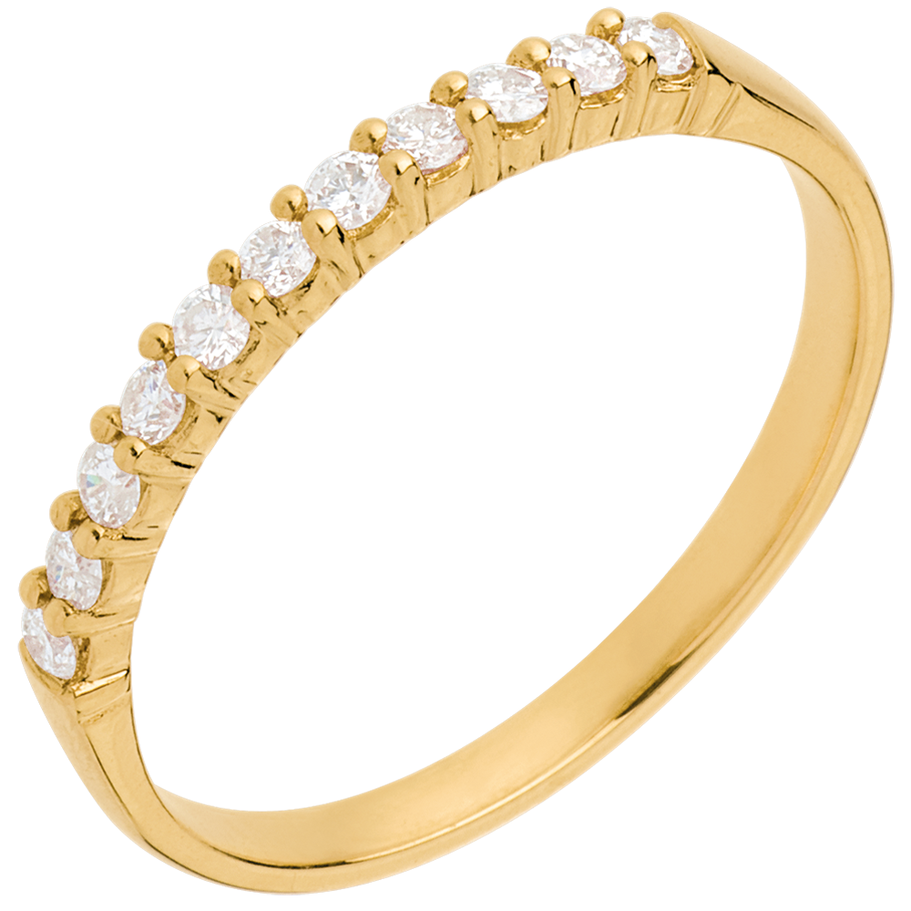 Obrączka z żółtego złota 18-karatowego w połowie wysadzana diamentami - krapy - 11 diamentów