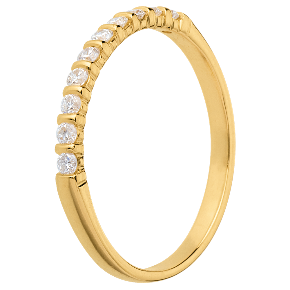 Obrączka z żółtego złota 18-karatowego w połowie wysadzana diamentami - krapy i oprawa sztabkowa - 10 diamentów