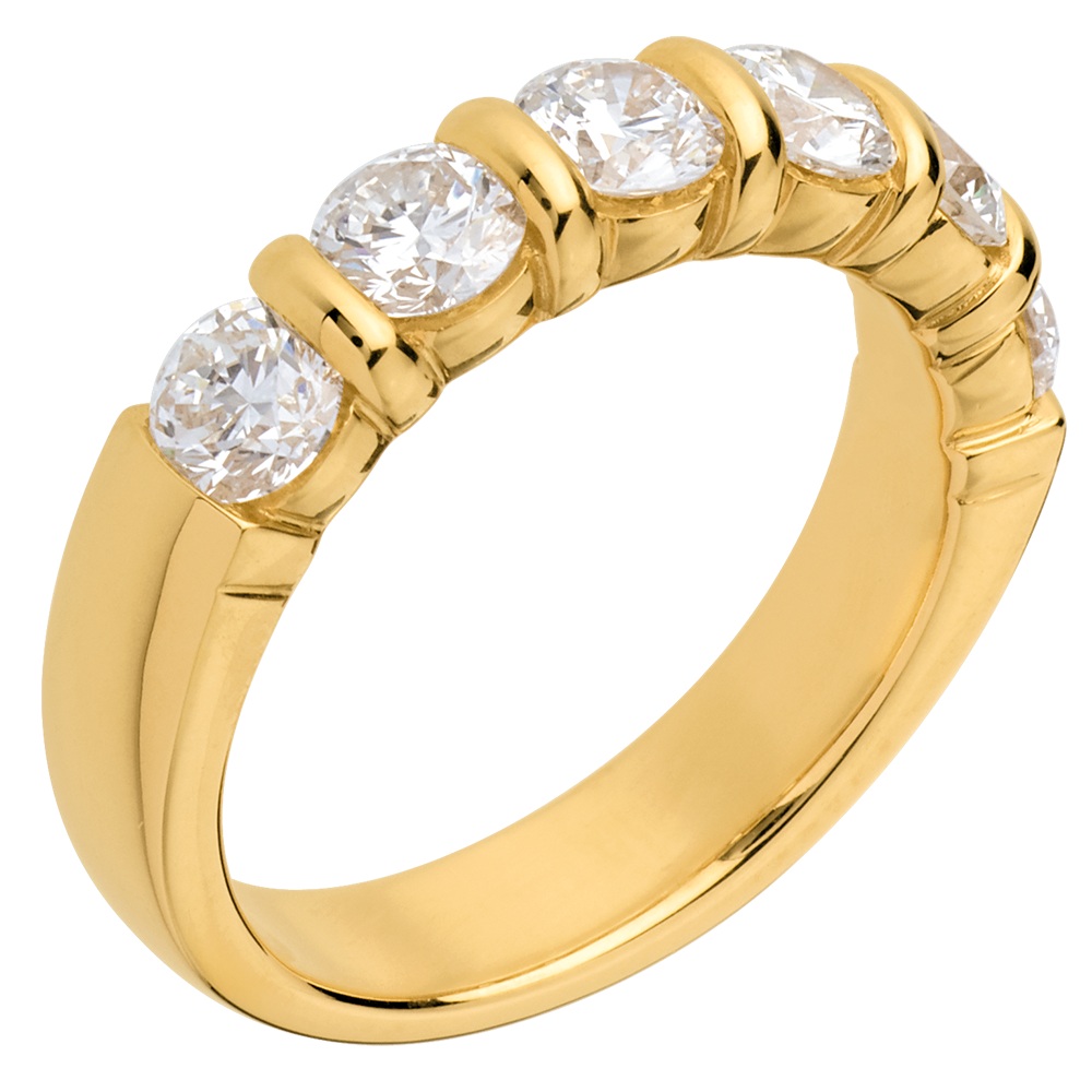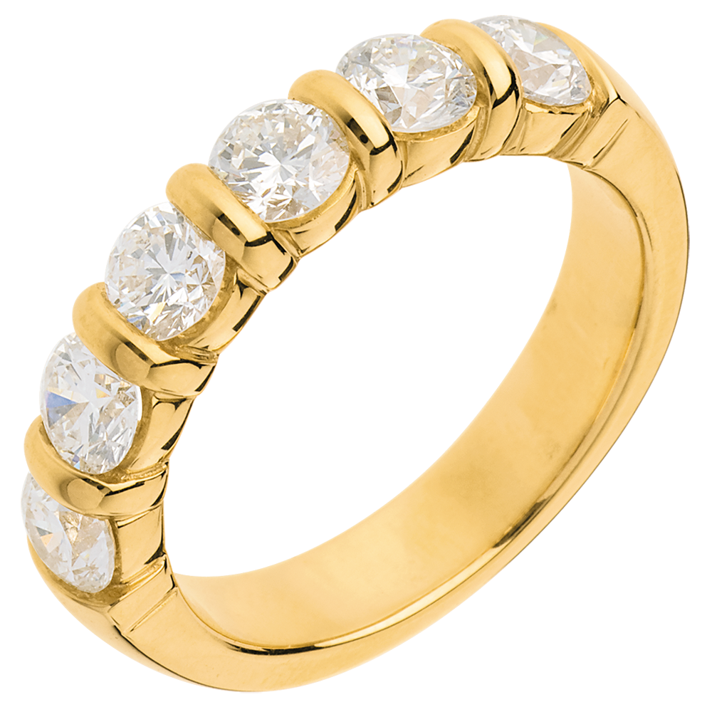 Obrączka z żółtego złota 18-karatowego w połowie wysadzana diamentami - oprawa sztabkowa - 1,5 karata - 6 diamentów