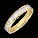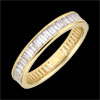 Doskonała równowaga w obrączce z żółtego złota o wyrazistej symbolice, wysadzanej diamentami o szlifie „bagieta” w oprawie kanałowej. Niezastąpiona ozdoba jako wyraz wyjątkowej więzi.