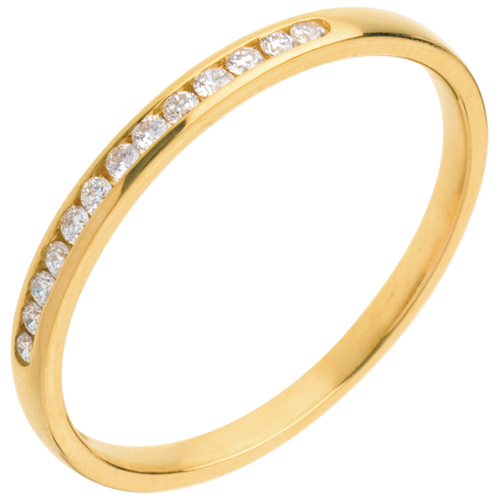 Doskonała równowaga w obrączce o wyrazistej symbolice, wysadzanej okrągłymi diamentami w oprawie kanałowej. Niezastąpiona ozdoba jako wyraz wyjątkowej więzi.