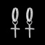 Pojedynczy kolczyk w kształcie koła ozdobiony wisiorkiem z białego złota w kształcie krzyżyka wysadzanym połyskującymi diamentami. Średnica wisiorka 3,1mm.