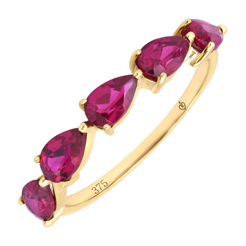 - Kreatywny gradient z pięcioma syntetycznymi rubinami w kształcie kropli