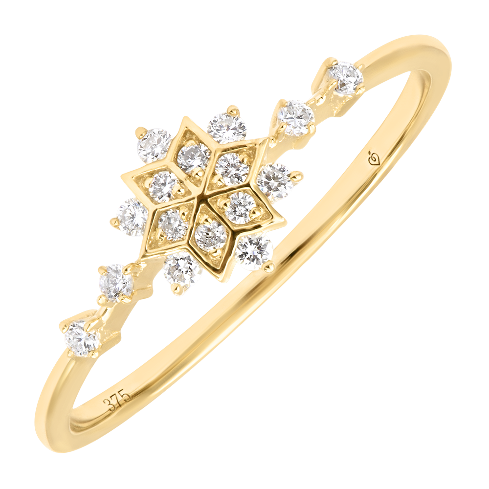 OBFITOść NR 33Pierścionek Kwiaty - Żółte złoto 375 - Diament laboratoryjny ID : 3963