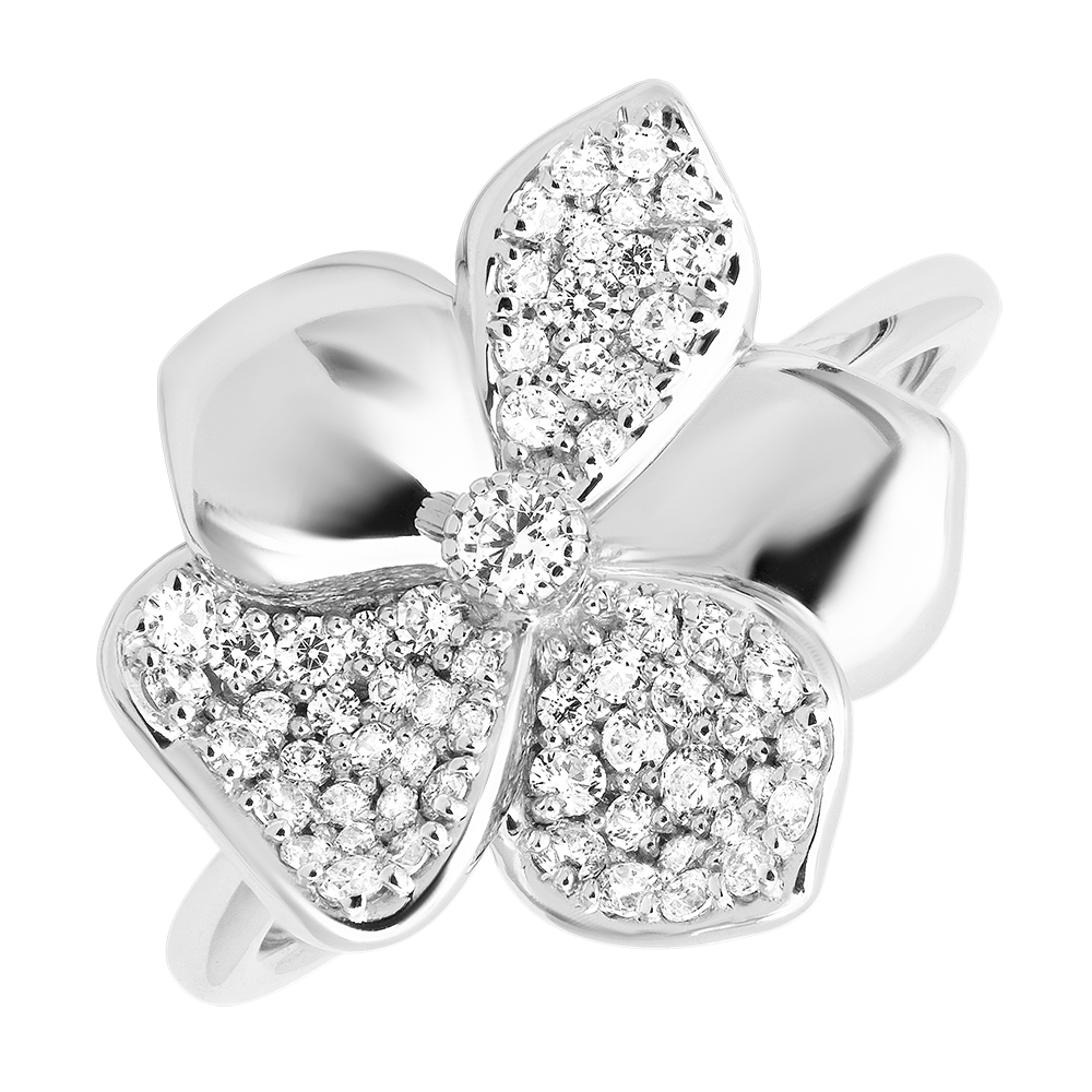 KREACJA « ATELIER » NR 7Pierścionek Kwiaty - Białe złoto 750 - Diament laboratoryjny ID : 1656