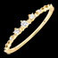 Pięć syntetycznych diamentów misternie oprawionych zdobi obrączkę z żółtego złota 9 karatów, tworząc harmonijną grę blasku i delikatnych, grawerowanych detali.