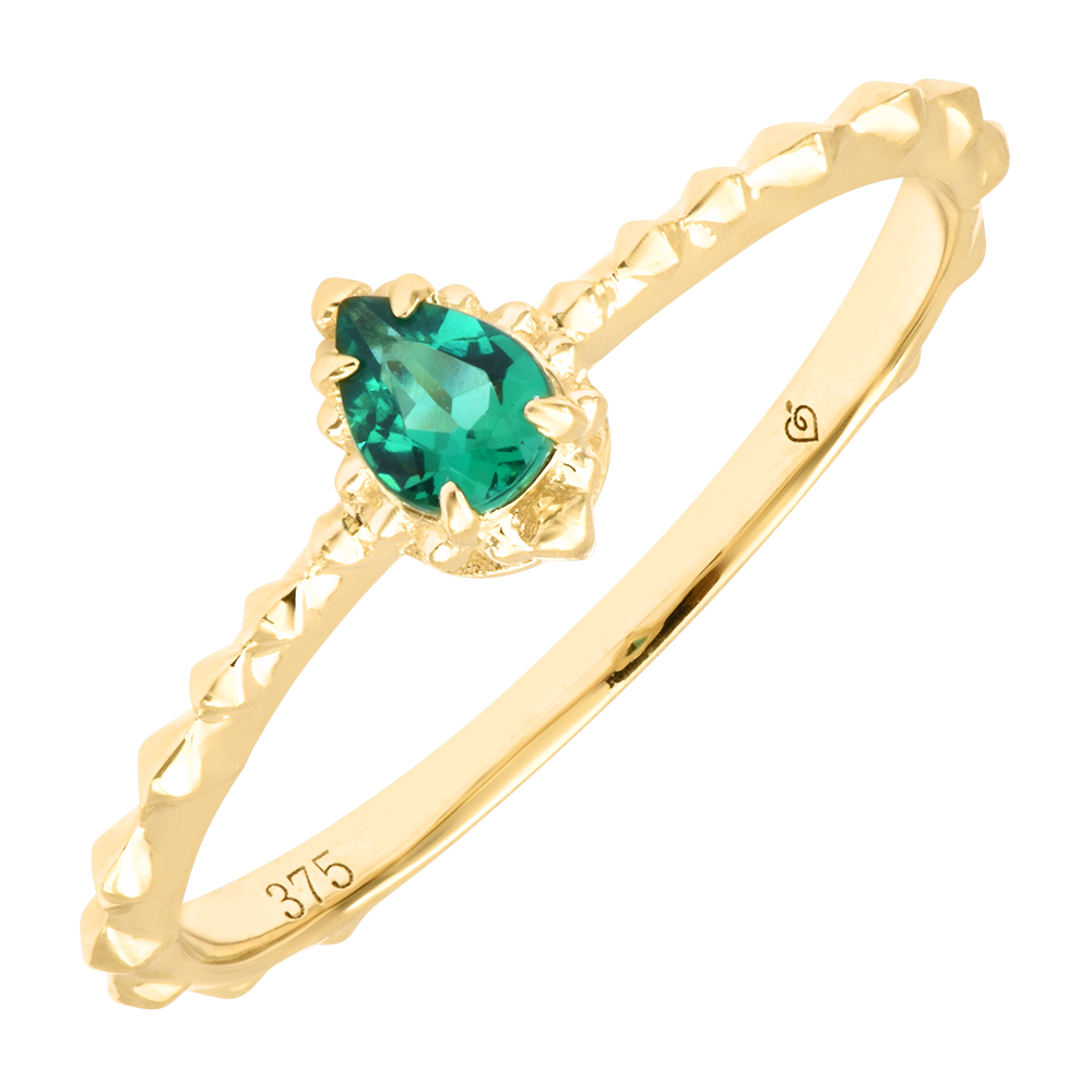 Pierścionek Idris – Żółte Złoto 9k i Szmaragd Syntetyczny