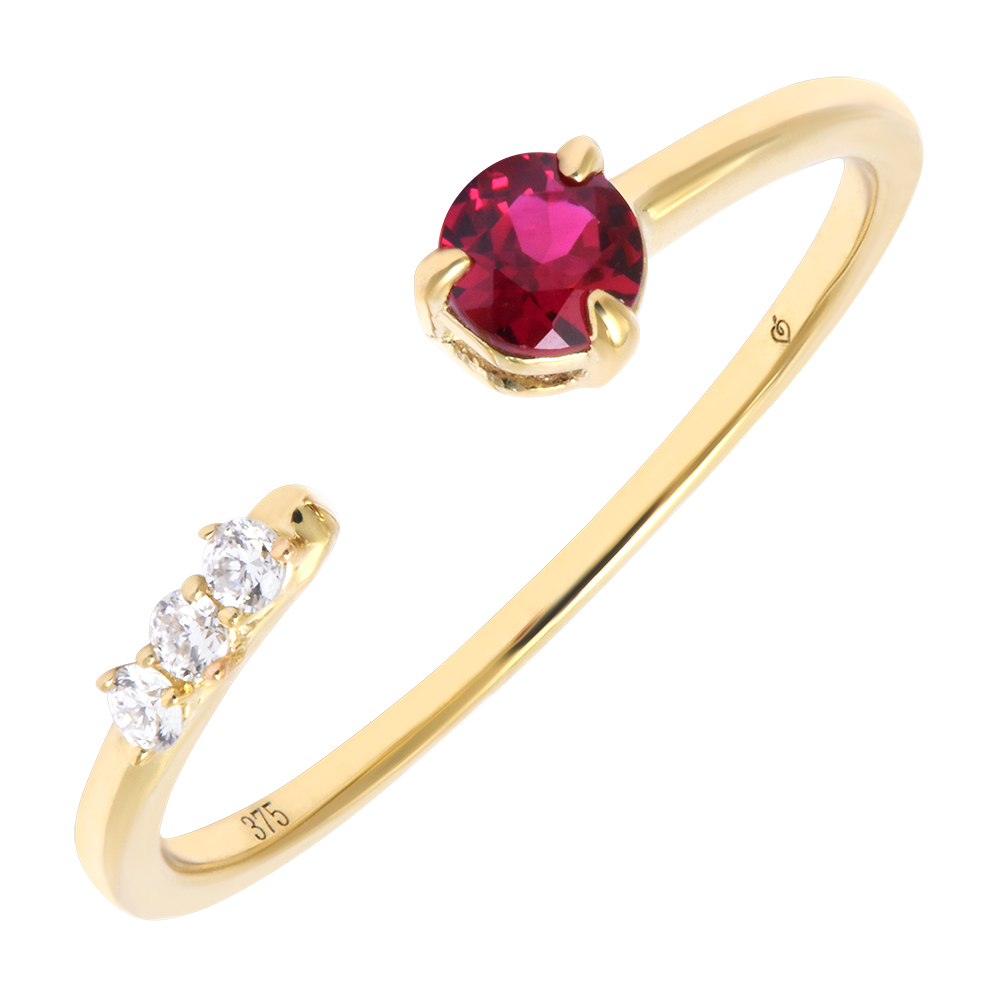 Pierścionek Intervalle – Żółte złoto 9-karatowe z diamentami syntetycznymi i syntetycznym rubinem