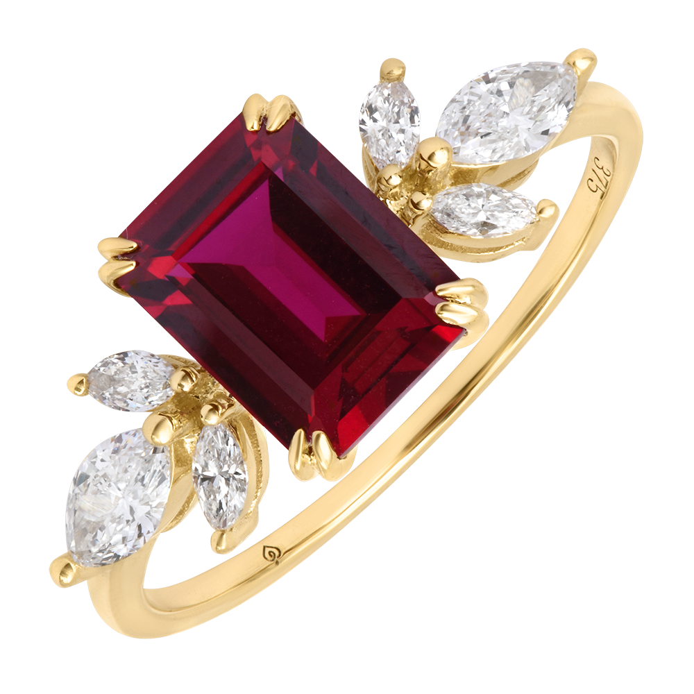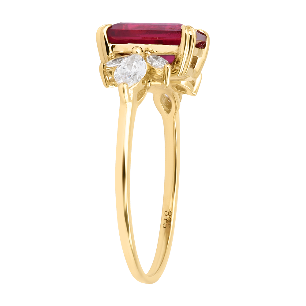 RAJSKI PTAK NR 31Pierścionek - Żółte złoto 375 - Syntetyczny rubin, Diament laboratoryjny ID : 3955