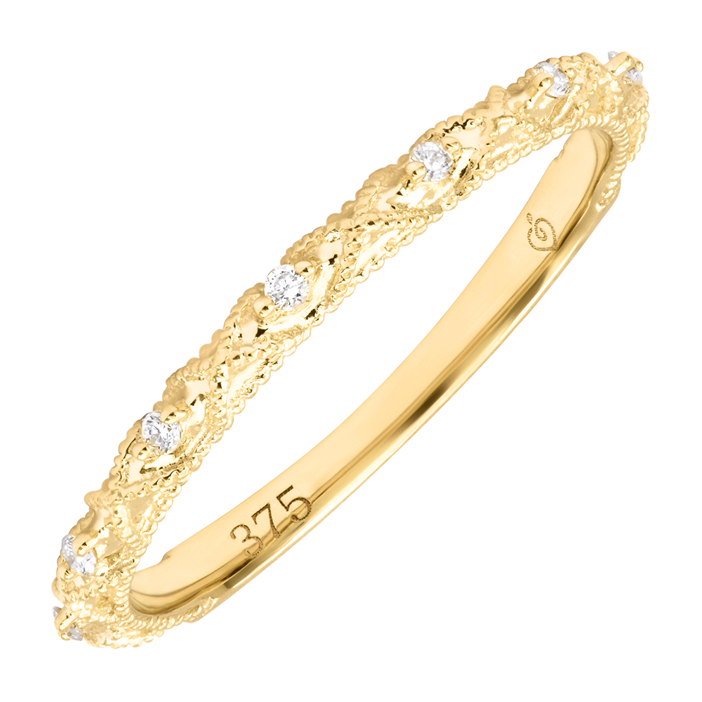 Pierścionek Lira – żółte złoto 9-karatowe i diamenty syntetyczne