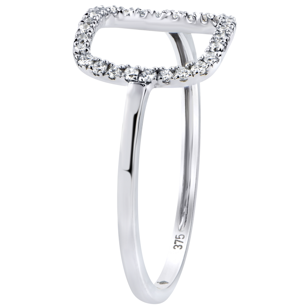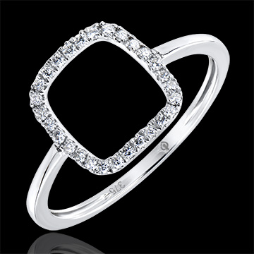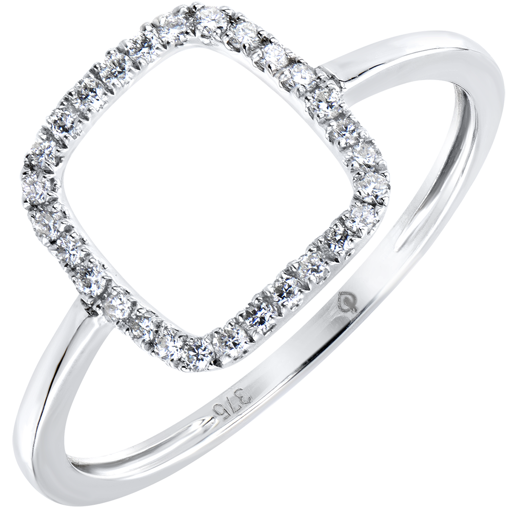 Graficzny i minimalistyczny pierścionek wysadzany diamentami ażurowo ozdabiającymi palec. Model, któremu z rozmysłem nadano nowoczesny i lekki charakter, będący wyrazem czystej kobiecości.