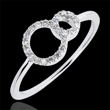 Minimalistyczny i delikatny pierścionek w kształcie wysadzanej diamentami pętli będącej symbolem nieskończoności. Prosta i podstawowa oprawa o zdecydowanie nowoczesnym rysie.