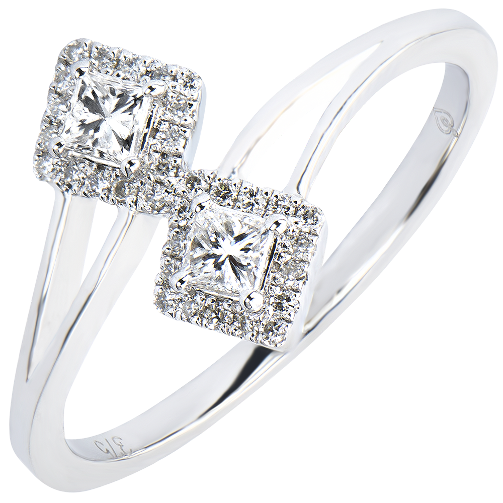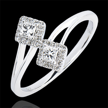 Pierścionek Obfitość – Ty i Ja Diamenty o szlifie princessa – białe złoto 9-karatowe z diamentami