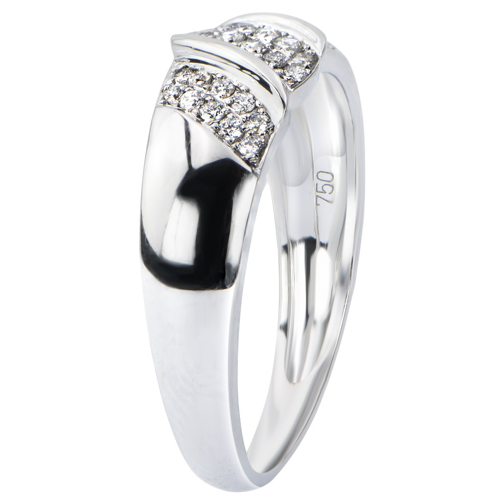 Pierścionek ozdobiony 3 wstążkami wysadzanymi diamentami, które dają wrażenie delikatnego ruchu.
