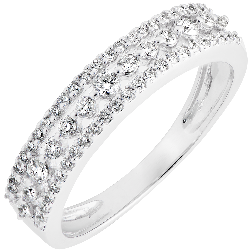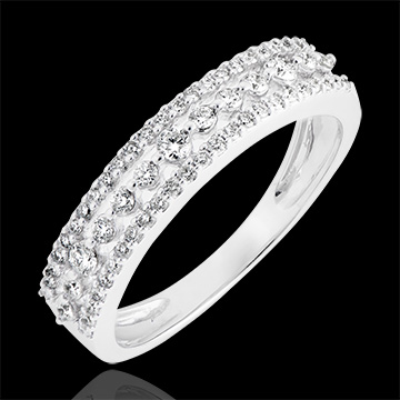 Klasyczna i delikatna kompozycja składająca się z 3 rzędów diamentów do samodzielnego noszenia , jako obrączka lub w kompozycji z innymi pierścionkami.