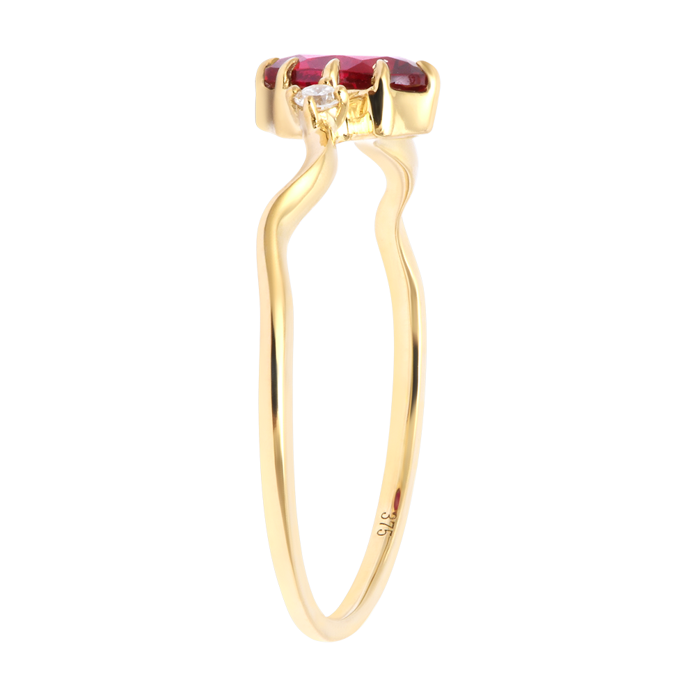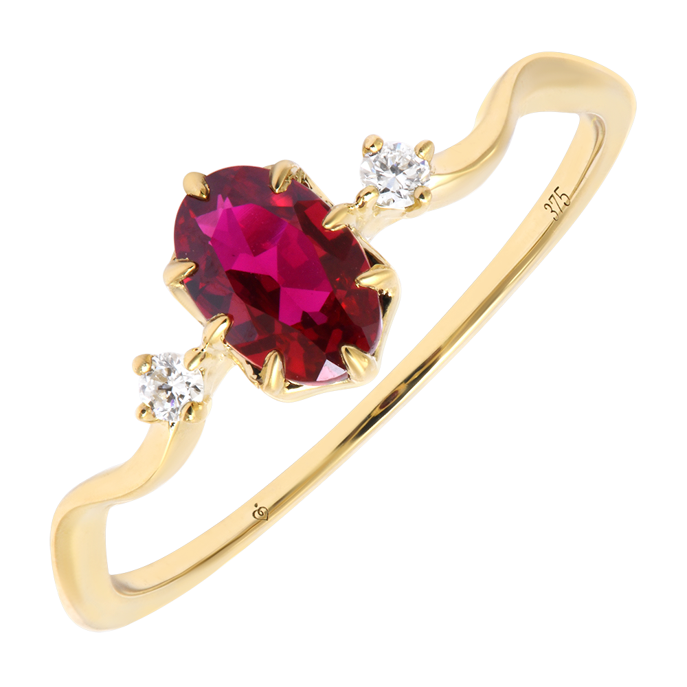 Pierścionek Rubra – Żółte złoto 9-karatowe z diamentami syntetycznymi i syntetycznym rubinem