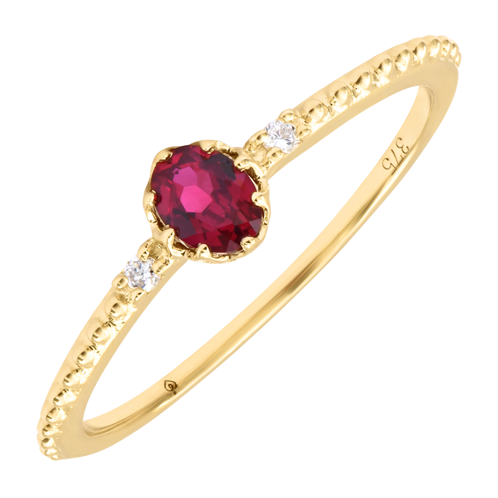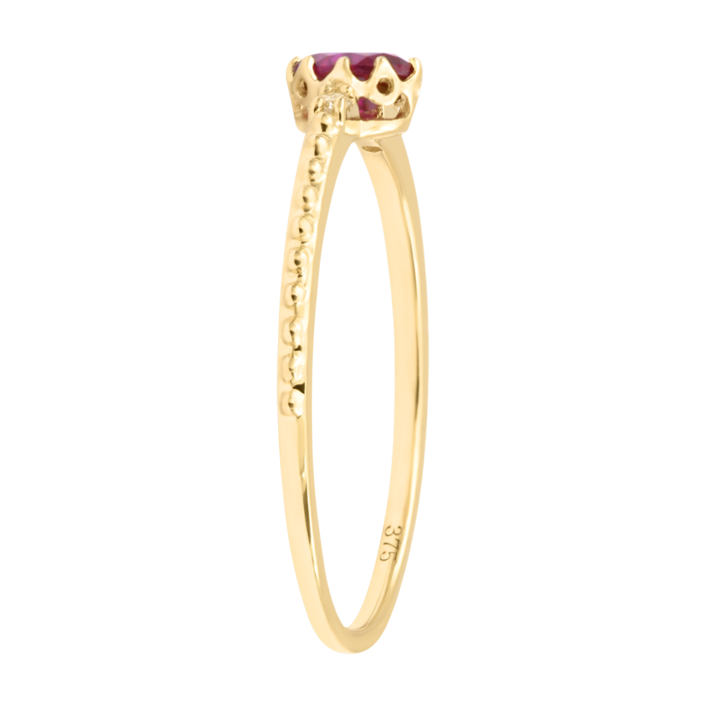 Pierścionek Sirha – Żółte złoto 9K, rubin i diamenty syntetyczne