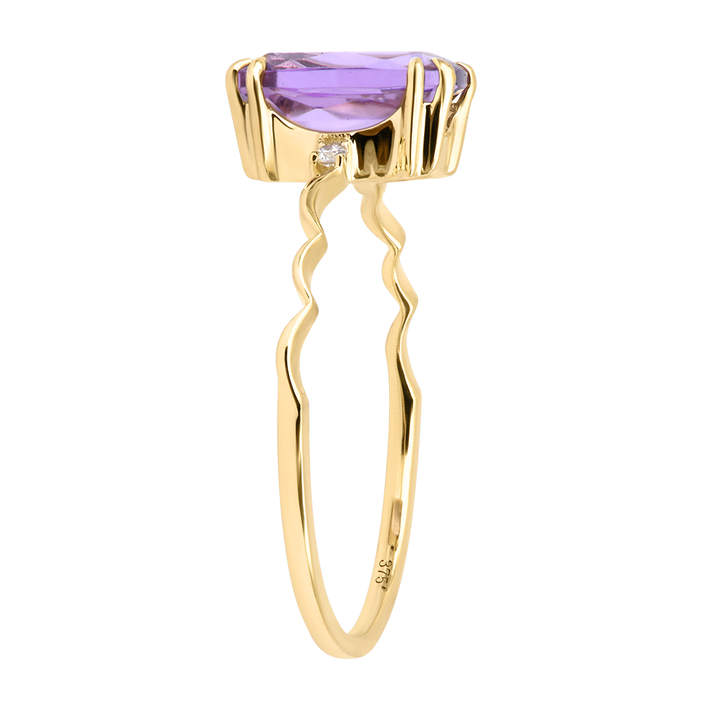 Pierścionek Vespera – Złoto żółte 9K, ametyst i diamenty syntetyczne