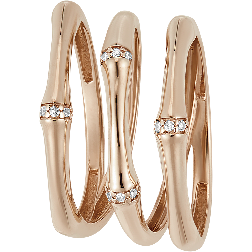 Pierścionek Święta Dżungla 3 rzędy diamentów - różowe złoto 9 karatów