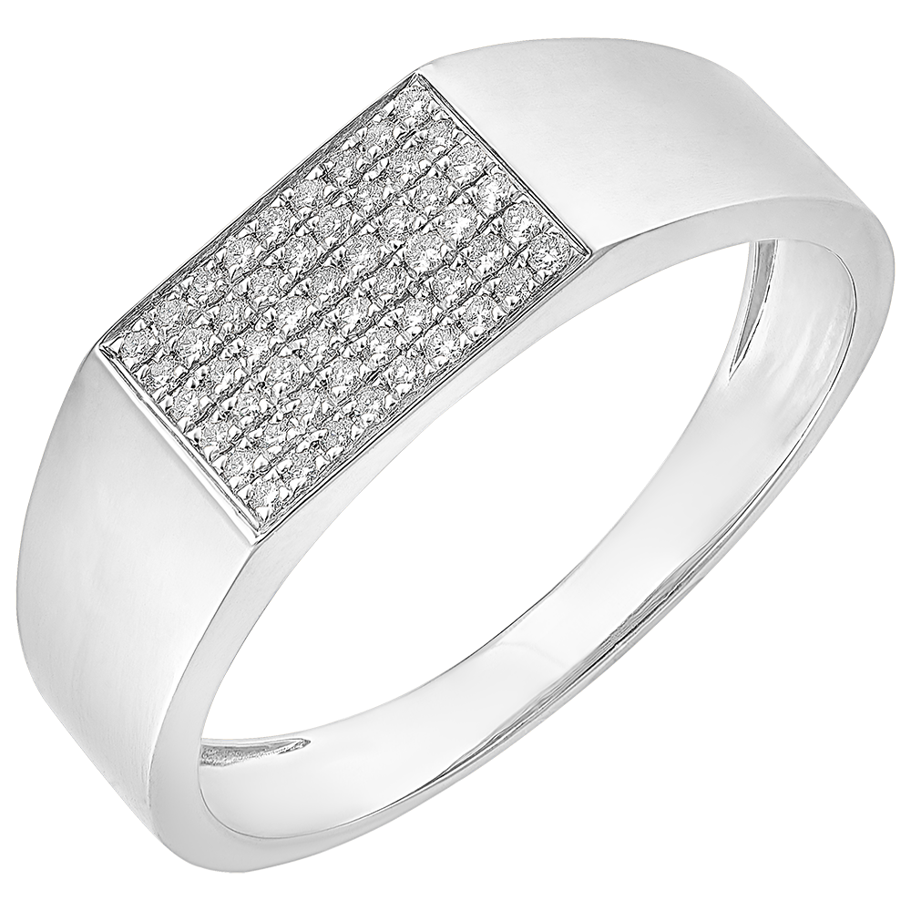 Pierścionek Światłocień - Sygnet Hektor z diamentami - 18 karatowe białe złoto i diamenty