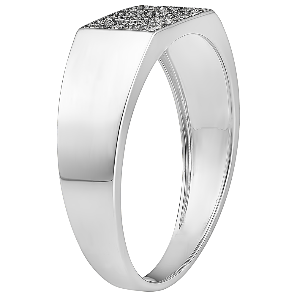 Sygnet z białego złota, pośrodku z prostokątną podstawą, bogato wysadzany 54 diamentami. Delikatny i jednocześnie luksusowy klejnot.…