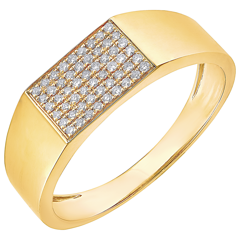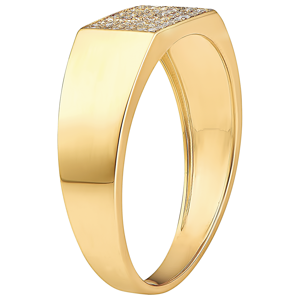 Sygnet z żółtego złota, pośrodku z prostokątną podstawą, bogato wysadzany 54 diamentami. Delikatny i jednocześnie luksusowy klejnot.…